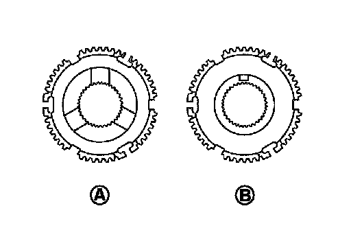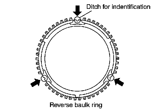 Reverse baulk ring has three spaces that two gear teeth are missing, and each space has small ditch for identification as shown in the figure.