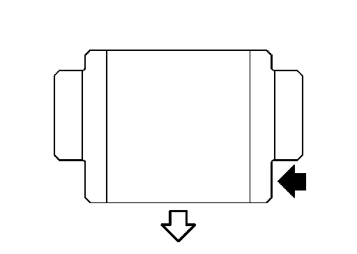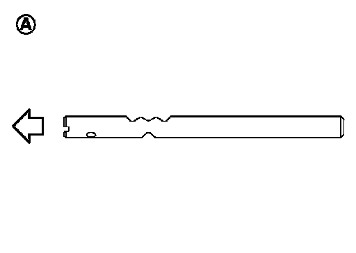 - Assemble retaining pin from the direction shown by the arrow in the figure until it becomes flush with the end surface of reverse shift fork.