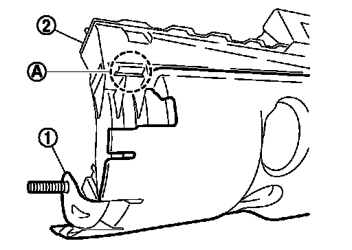 a.Insert baffle plate (1) until its projection contacts groove (A) of oil gutter (2).