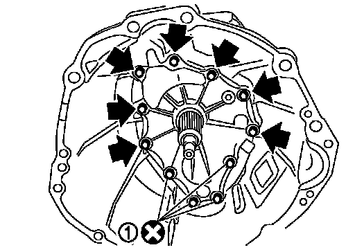 a.Remove mounting bolts (black arrow) and sealing bolts (1).