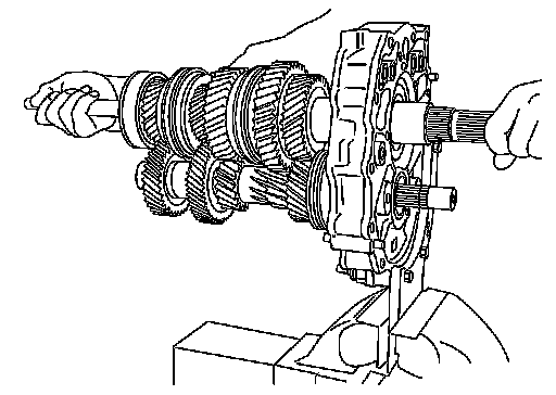 7.Carefully tap mainshaft with a plastic hammer and then remove mainshaft assembly, main drive gear assembly, and counter shaft assembly combined in one unit from adapter plate.