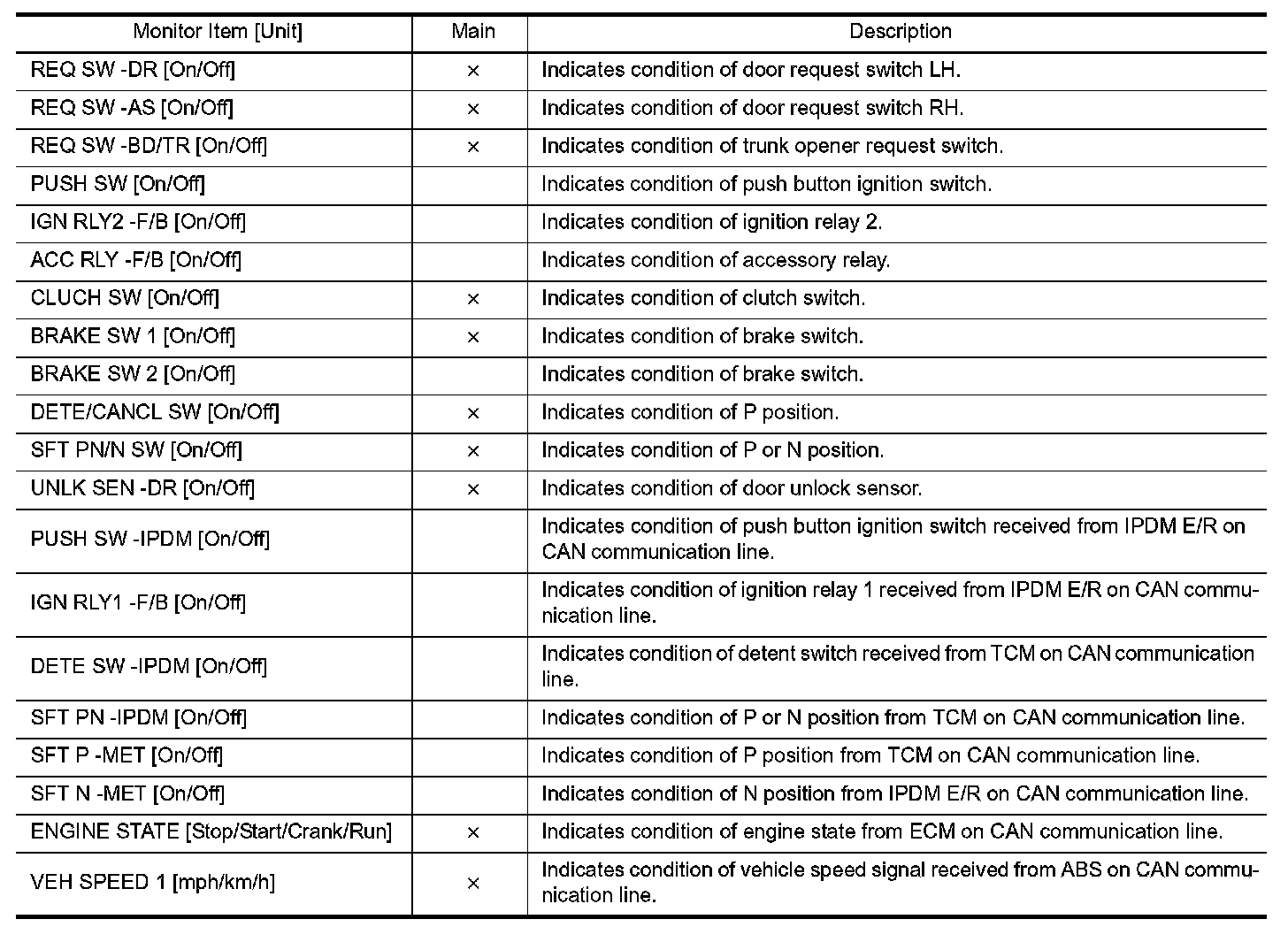 INTELLIGENT KEY : CONSULT Function (BCM - INTELLIGENT KEY)