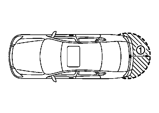 The outside key antenna detection area of trunk open function is in the range of approximately 80 cm (31.50 in) surrounding trunk opener request switch (1). However, this operating range depends on the ambient conditions.
