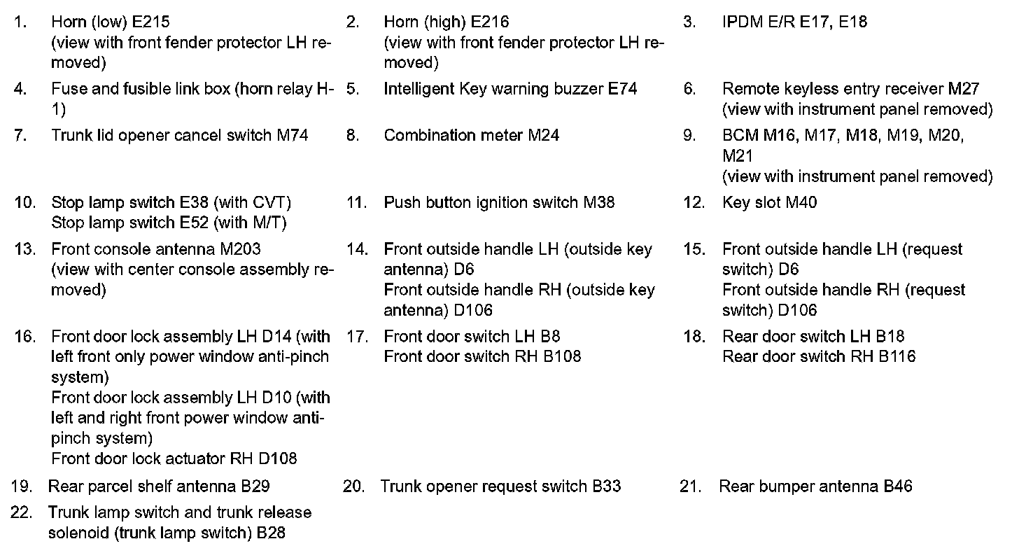 TRUNK REQUEST SWITCH : Component Parts Location