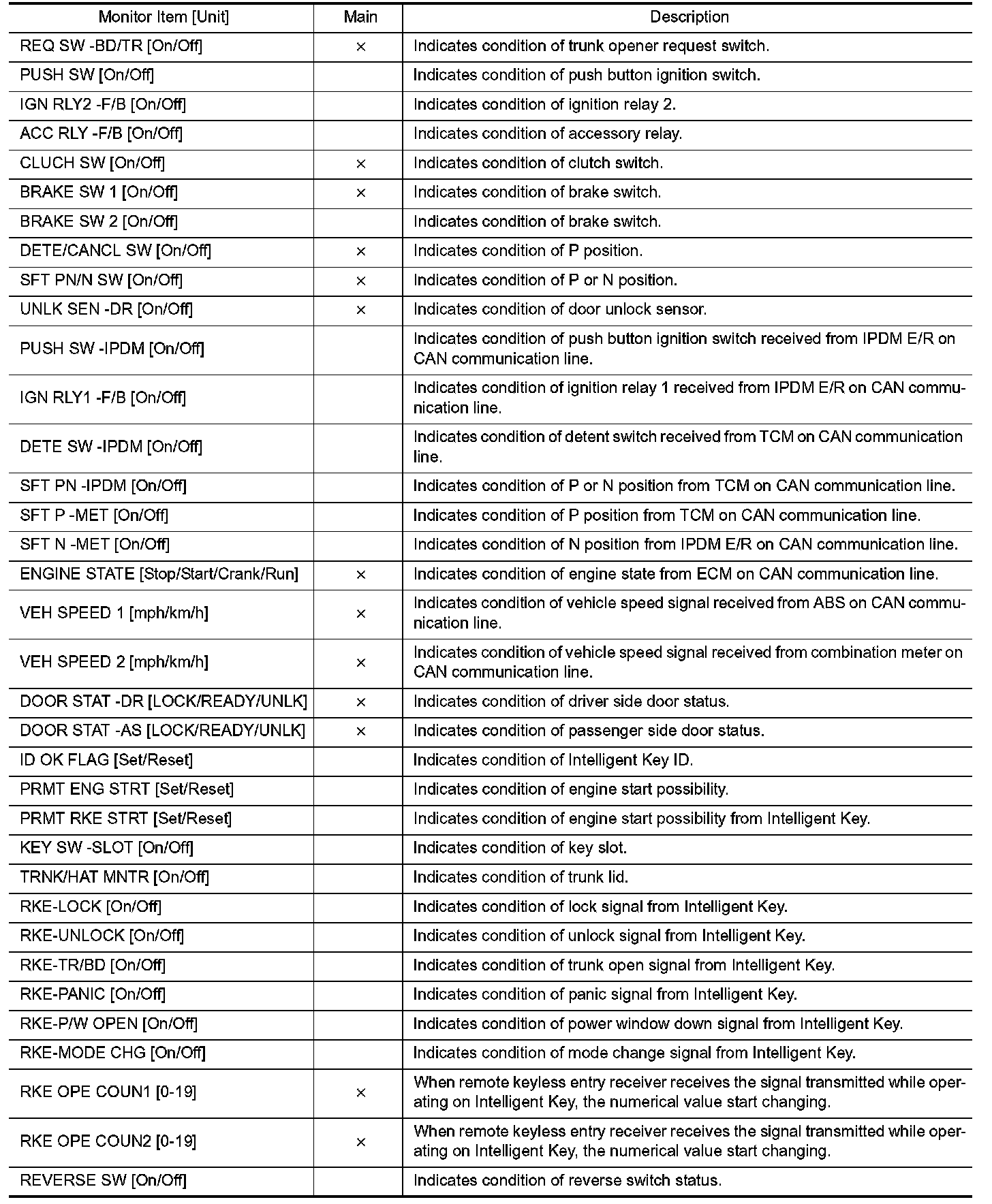 INTELLIGENT KEY : CONSULT Function (BCM - INTELLIGENT KEY)