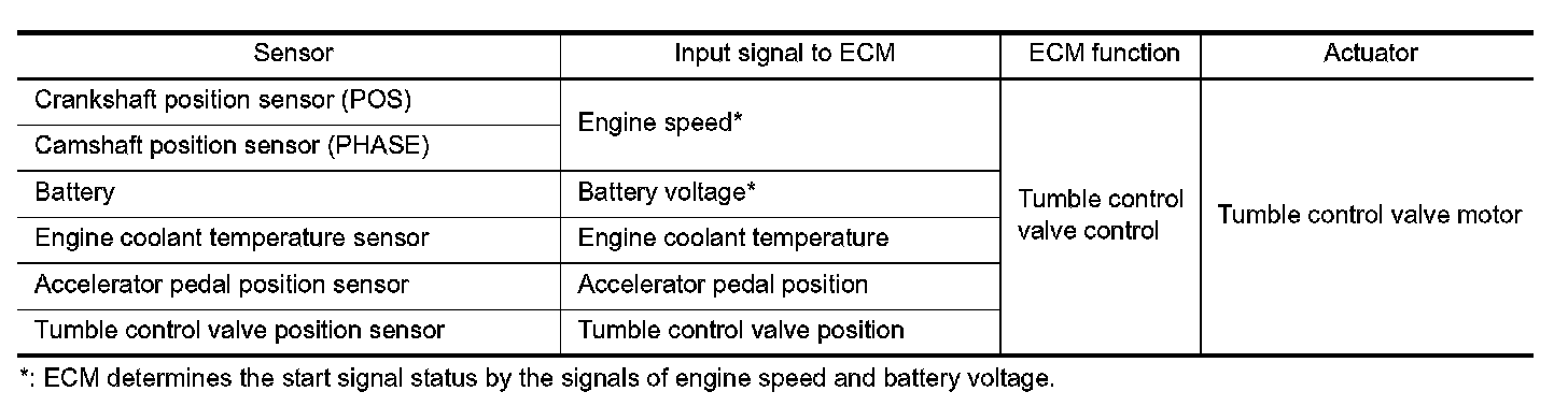 Also, except when idling and during low engine coolant temperature, this system opens the tumble control valve.