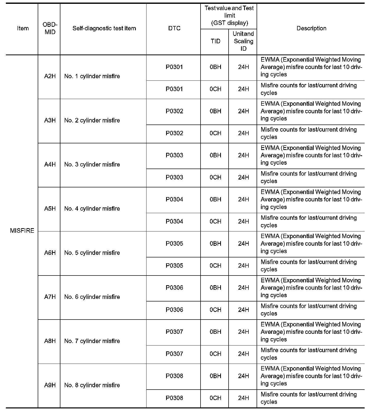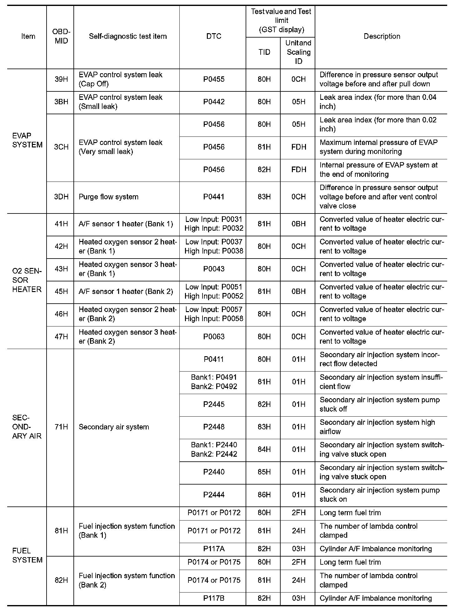 These data (test value and test limit) are specified by On Board Monitor ID (OBDMID), Test ID (TID), Unit and