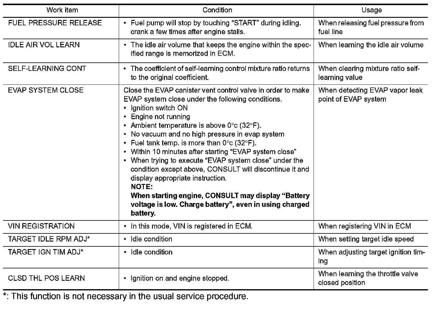 *: Leaving cooling fan OFF with CONSULT while engine is running may cause the engine to overheat.