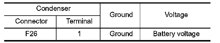 4.Check the voltage between condenser-2 harness connector and ground.