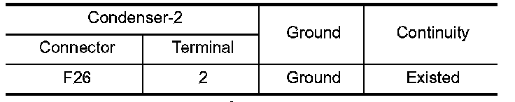2.Check the continuity between condenser-2 harness connector and ground.
