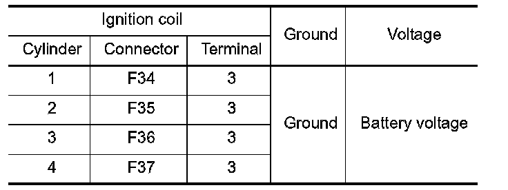 4.Check the voltage between ignition coil harness connector and ground.