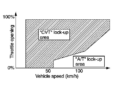 - The lock-up applied gear range was expanded by locking up the torque converter at a lower vehicle speed than conventional CVT models.