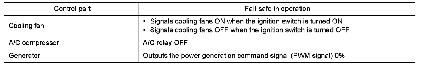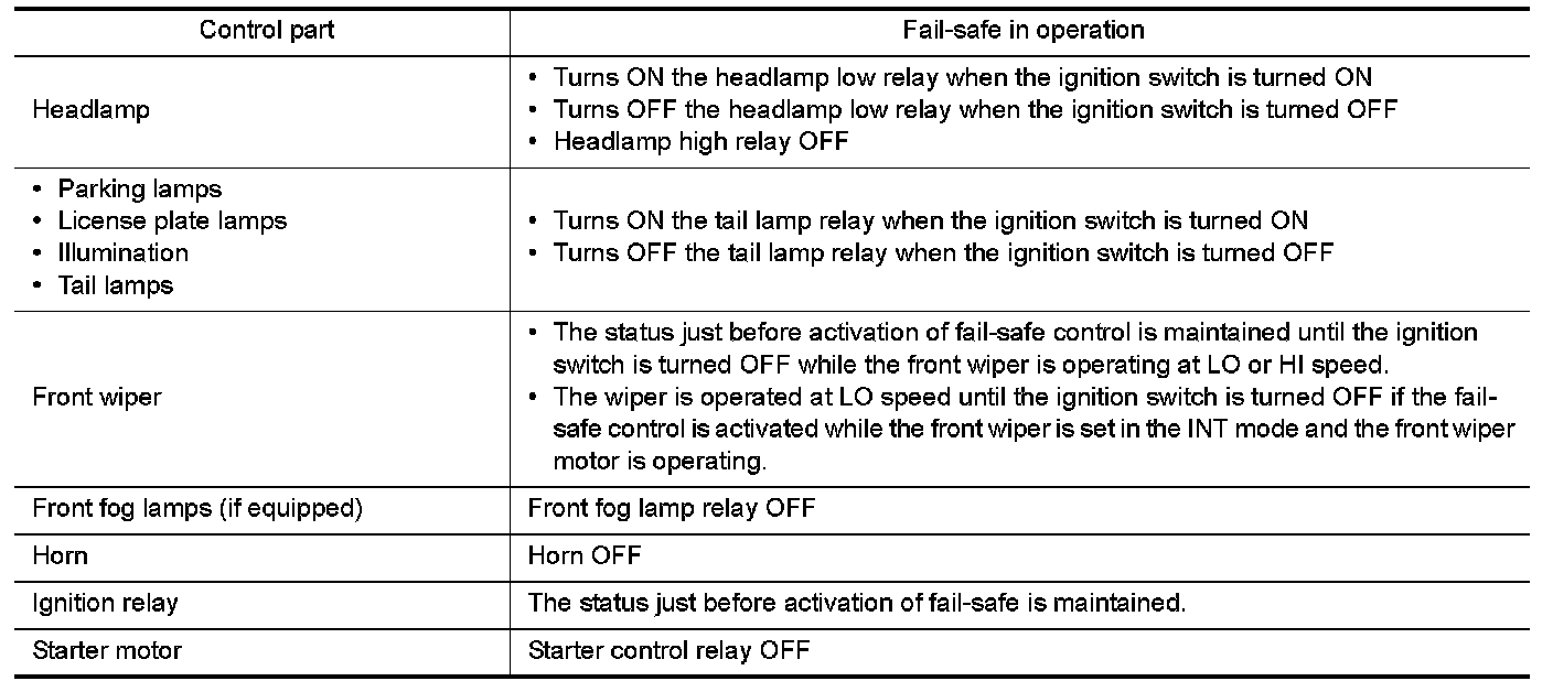 When CAN communication with ECM and BCM is impossible, IPDM E/R performs fail-safe control. After CAN communication recovers normally, it also returns to normal control.