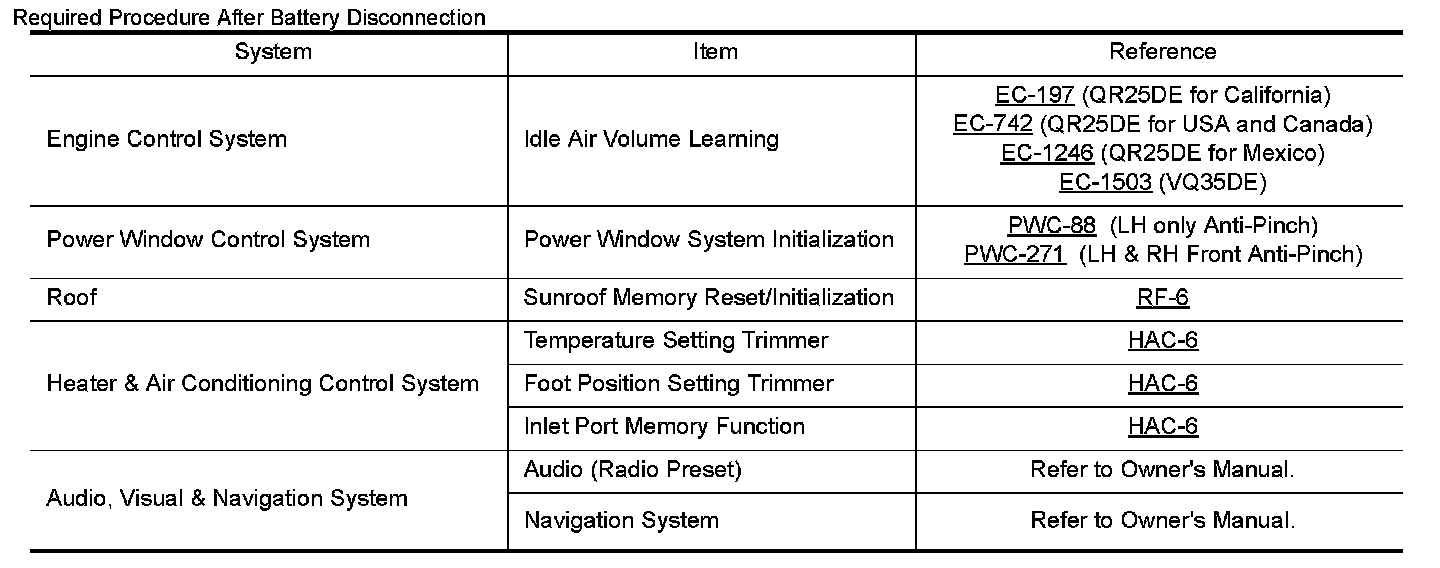 ADDITIONAL SERVICE WHEN REMOVING BATTERY NEGATIVE TERMINAL : Special Repair Requirement