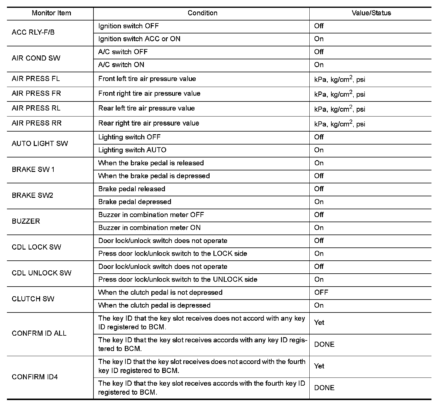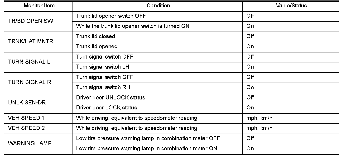 - Display tire pressure reported by the TPMS transmitter