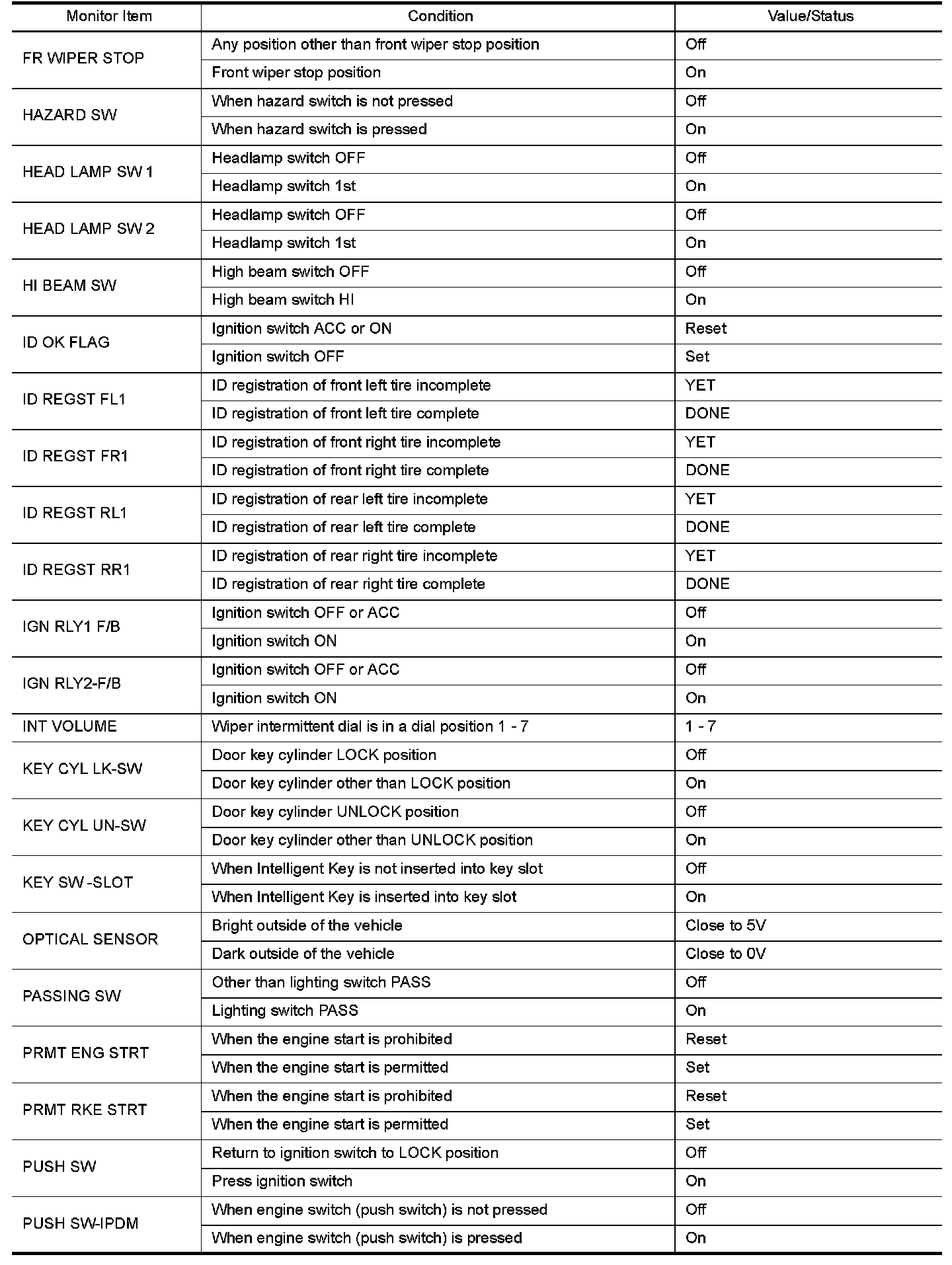 - Check Intelligent Key relative signal strength