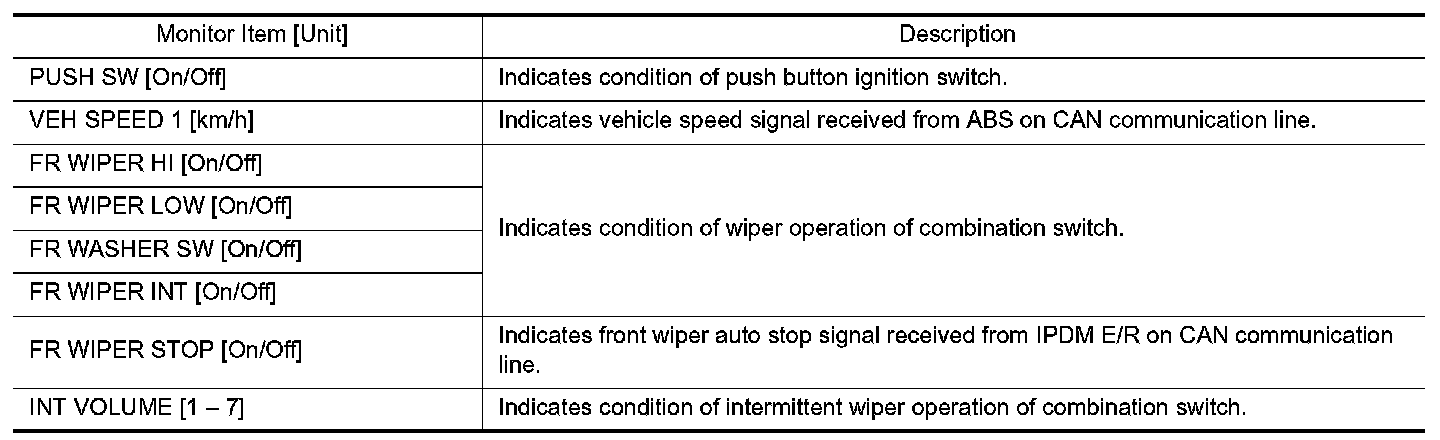 WIPER : CONSULT Function (