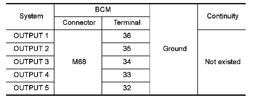 Check for continuity between BCM harness connector and ground.
