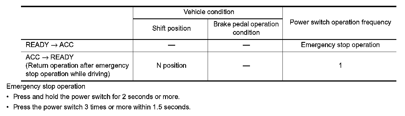 READY SET CONDITION TABLE BY POWER SWITCH OPERATION