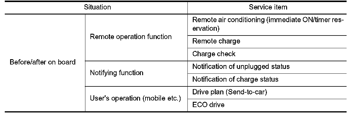 - For activation operation, refer to "ADDITIONAL SERVICE WHEN USING TELEMATICS SYSTEM