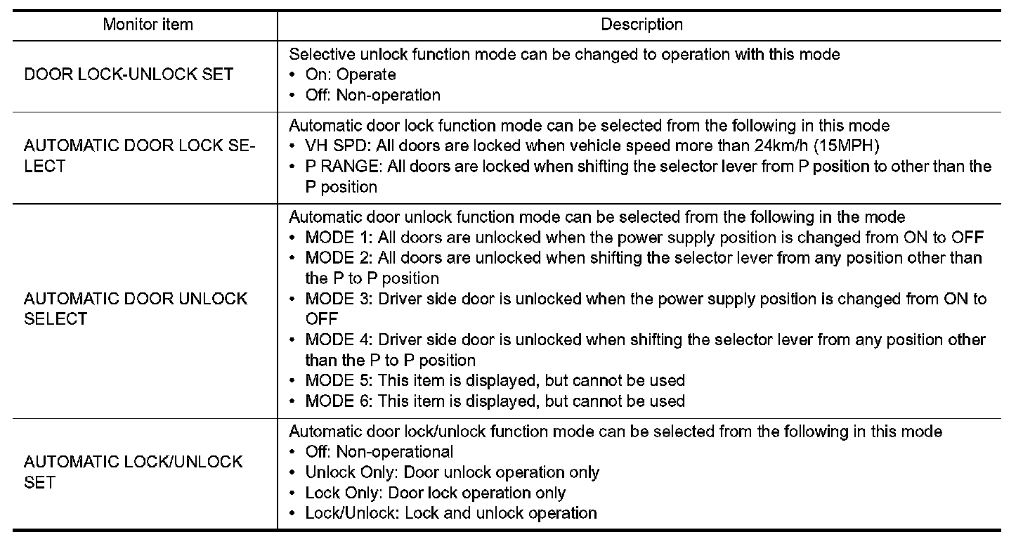 DOOR LOCK : CONSULT Function (