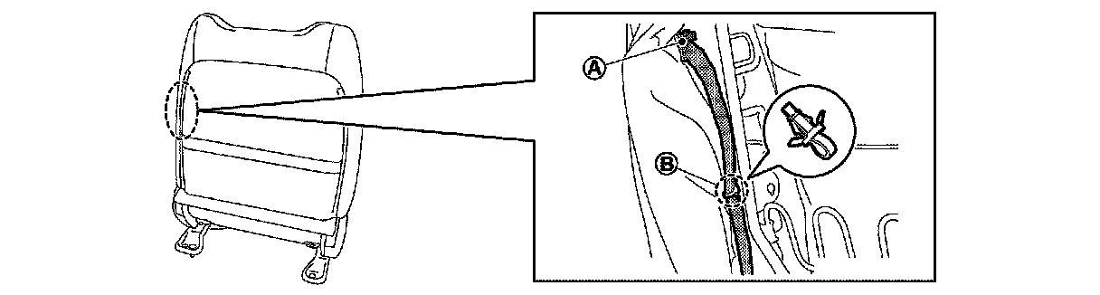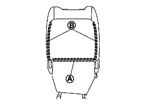 2.Disengage seatback retainer (A) and open seatback fasteners (B).
