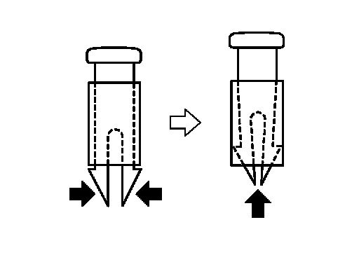 4.Use pincers, etc., to press up pawls as shown by the arrows in the figure, and remove headrest holder from seatback.