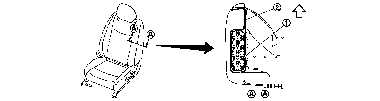 - Check that side air bag module (1) and inner cloth (reinforcement cloth) (2) is in the position as shown in the figure.