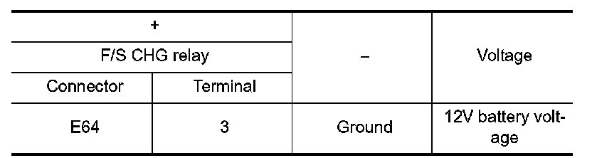 4.Check the voltage between F/S CHG relay harness connector and ground.