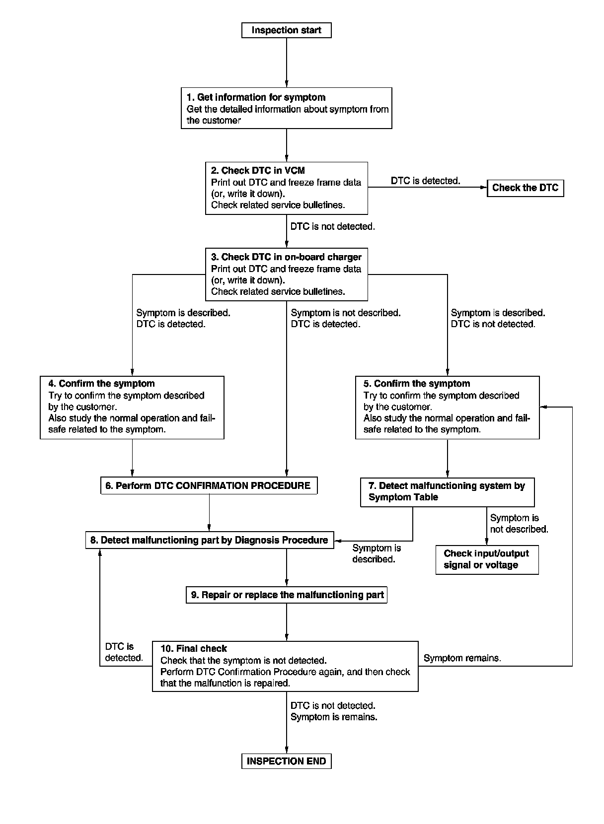 NO- Monitor input data from related sensors or check voltage of related on-board charger terminals using CONSULT. Pinout Values and Diagnostic Parameters.