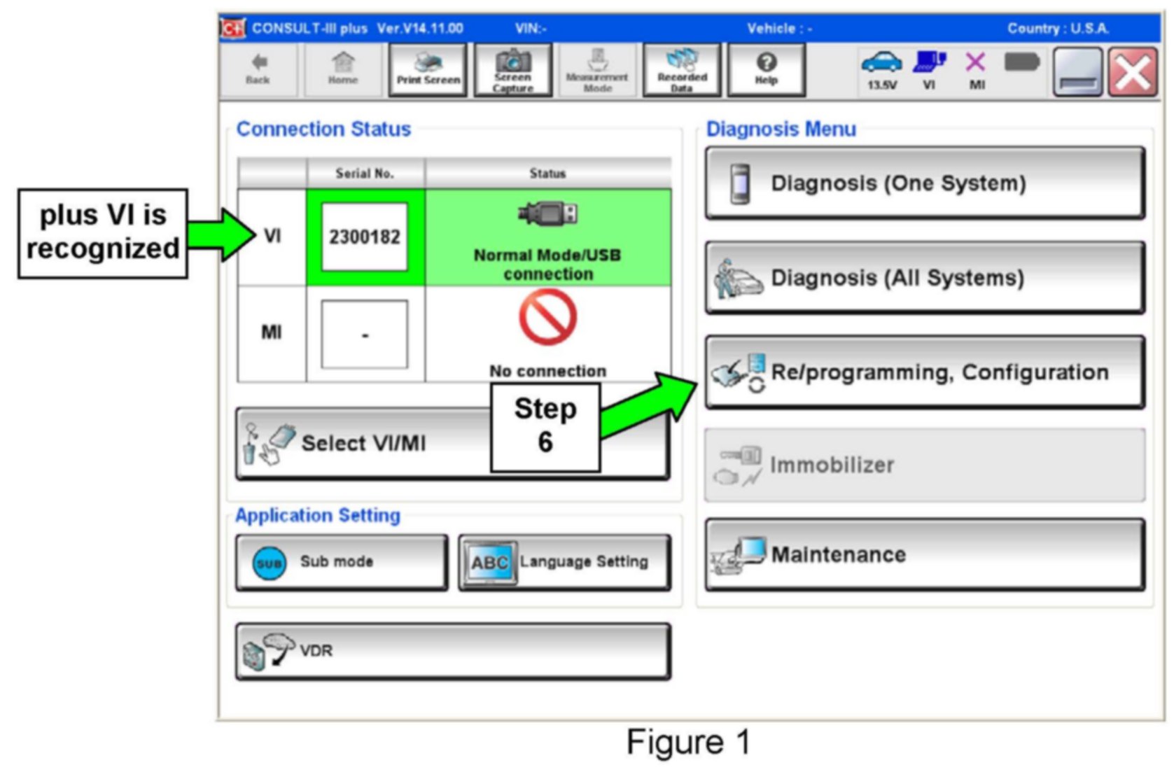 6. After the plus VI is recognized, select Re/programming, Configuration.