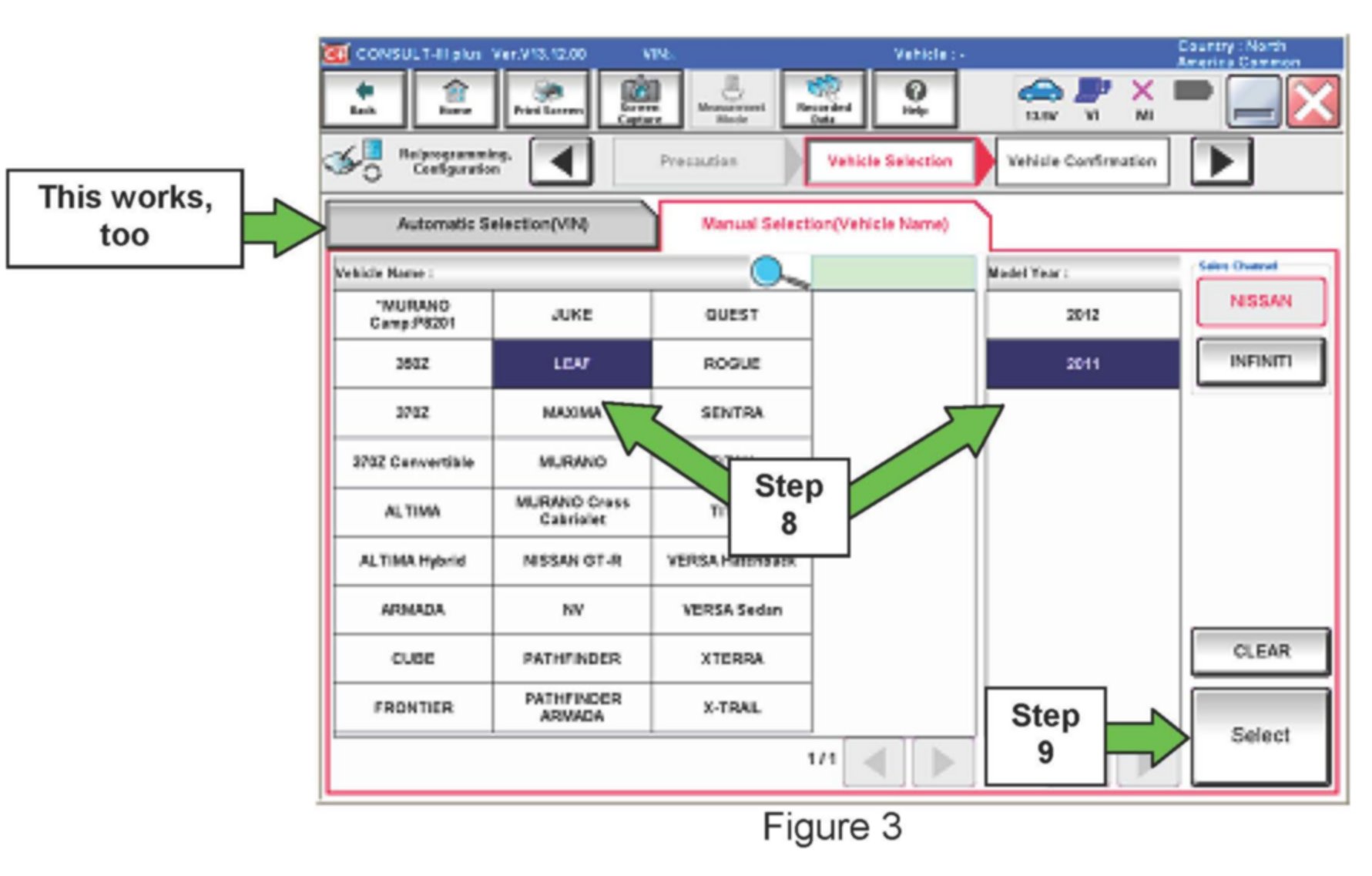 8. Select LEAF and 2012 or Automatic Selection (VIN)