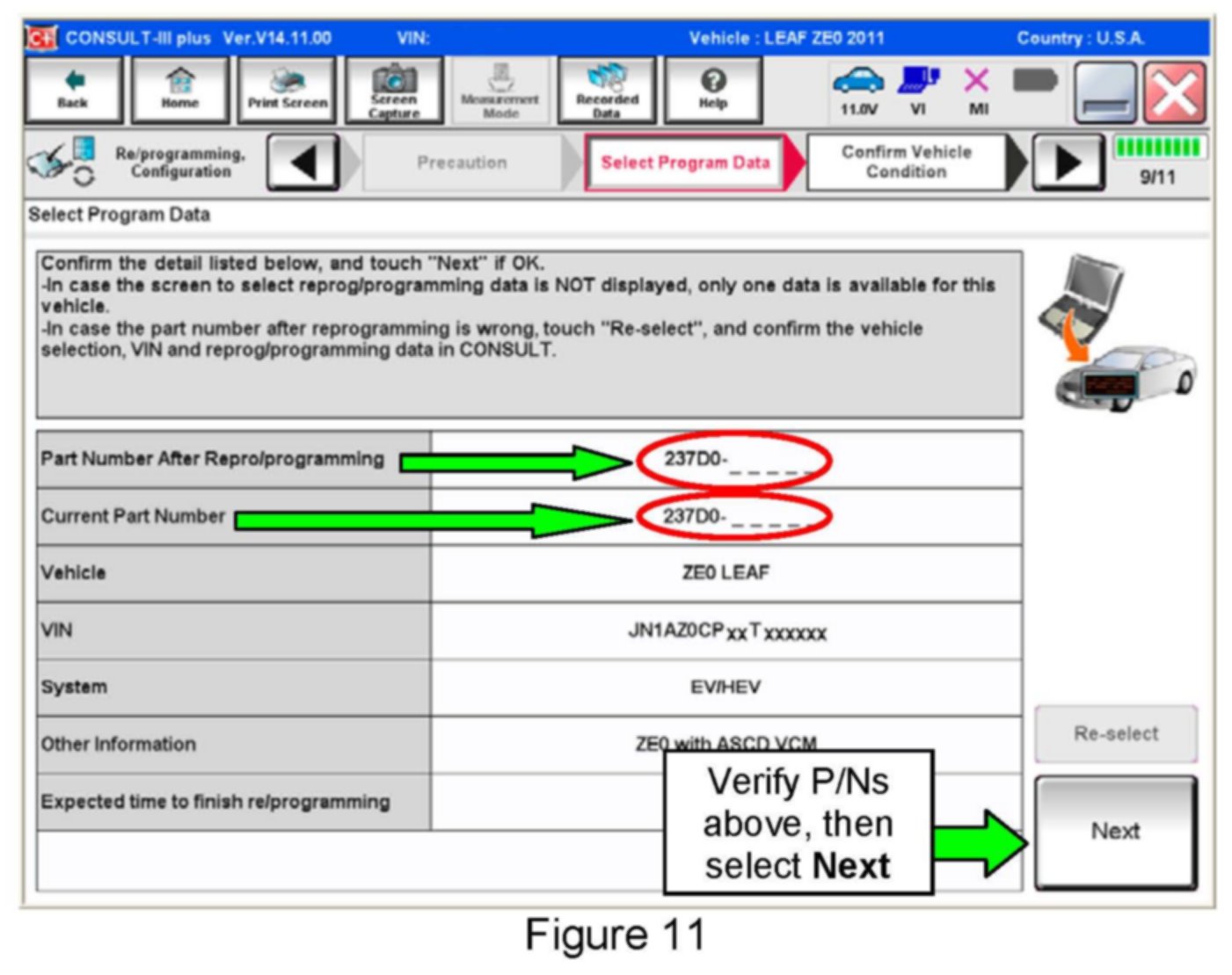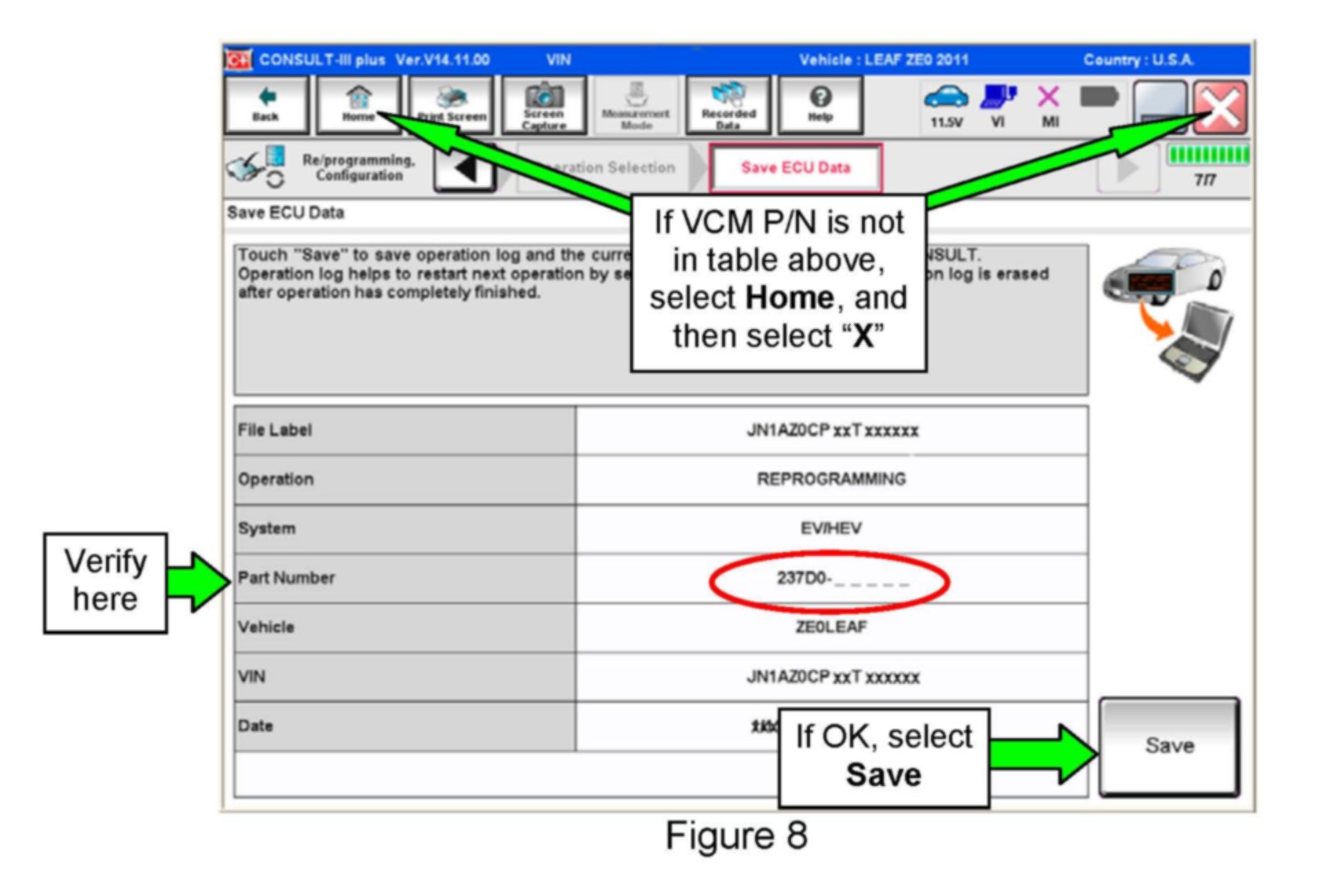 ^ If the VCM part number is not in the table above, this campaign may not apply or it has already been done. Close C-III plus (select Home, and then the "X") and the CONSULT PC, disconnect from the vehicle, and then recheck Service Comm for campaign eligibility.