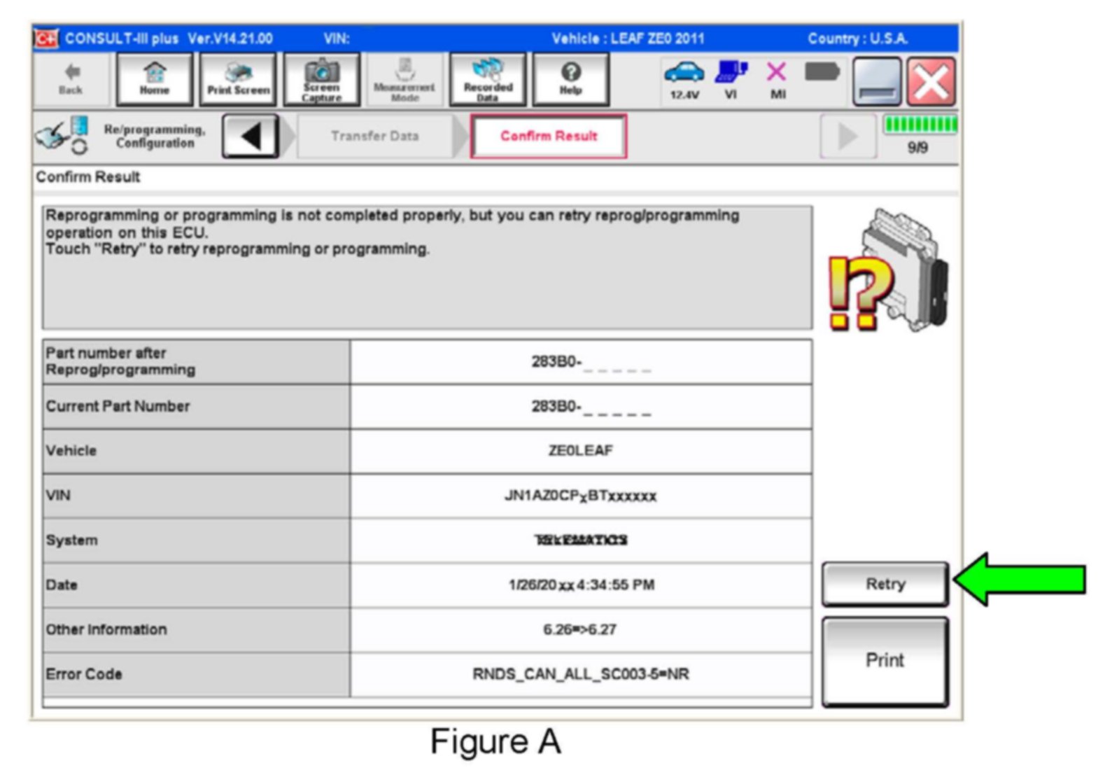 If reprogramming does not complete and the !? displays as shown in Figure A: