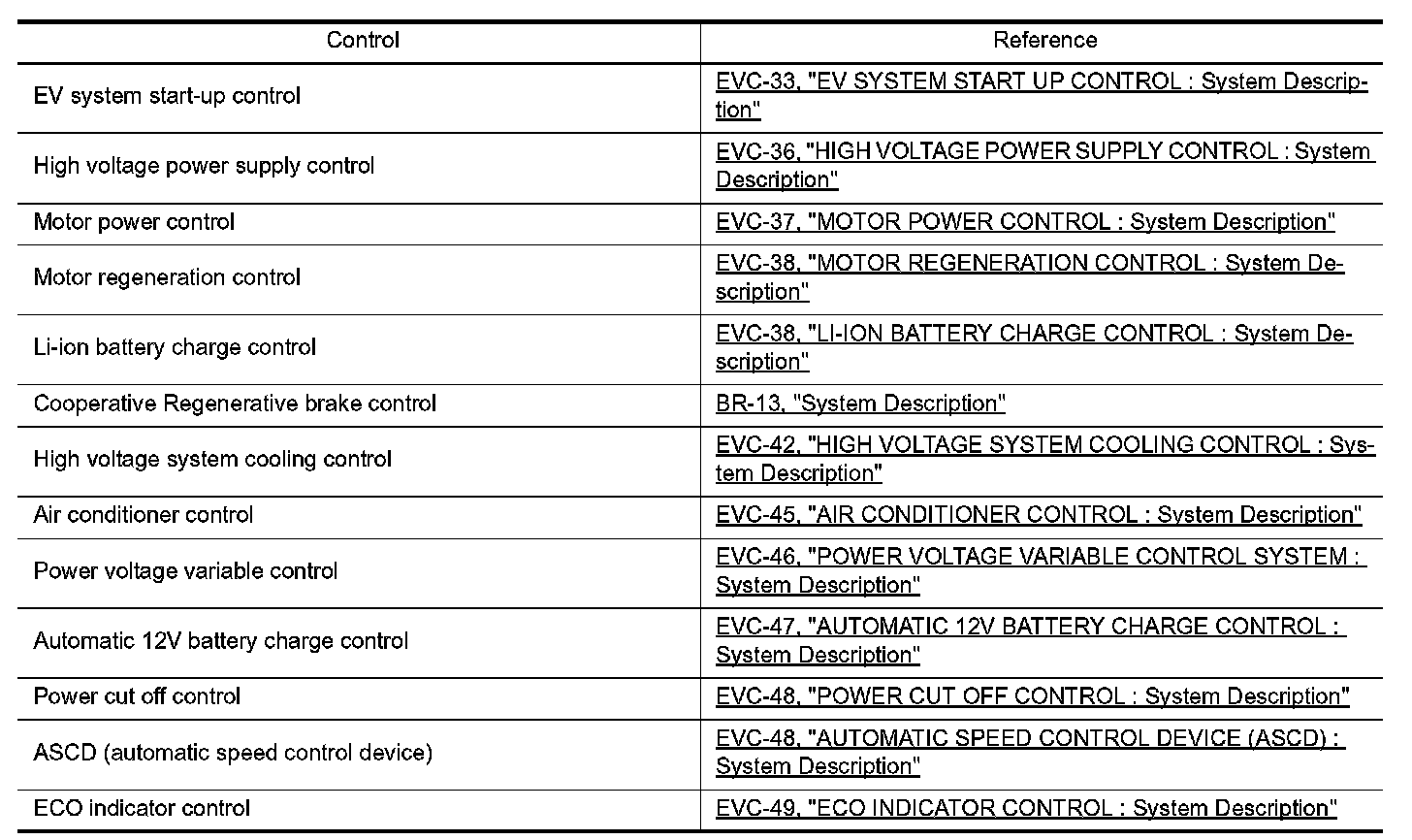 Main Control Contents of EV