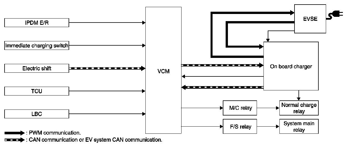 EV system activation signal to VCM. When VCM detects an ON signal from the immediate charging switch in that state, VCM judges that the immediate charge mode is selected and starts charging.