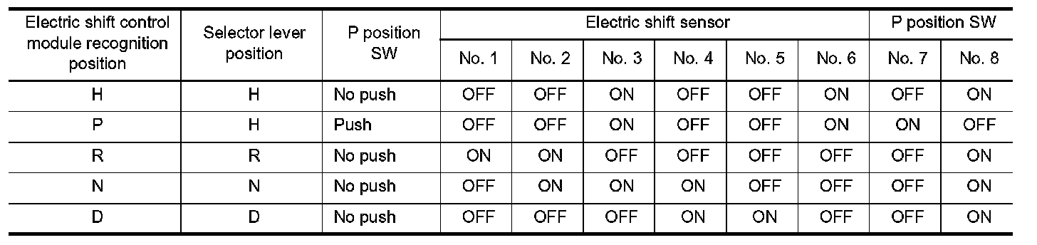- The electric shift control module determines the shift position from the combination of the ON/OFF signals.