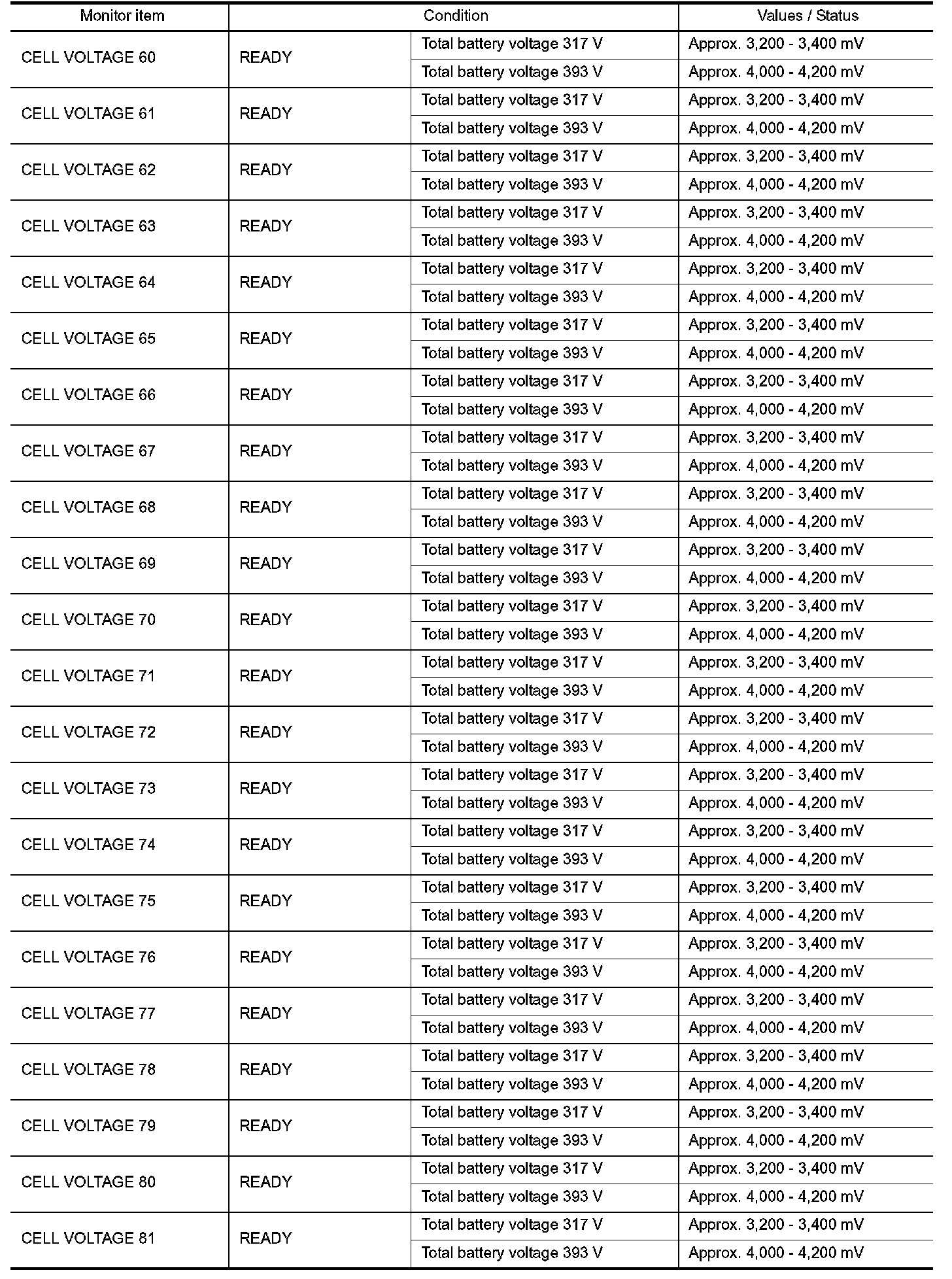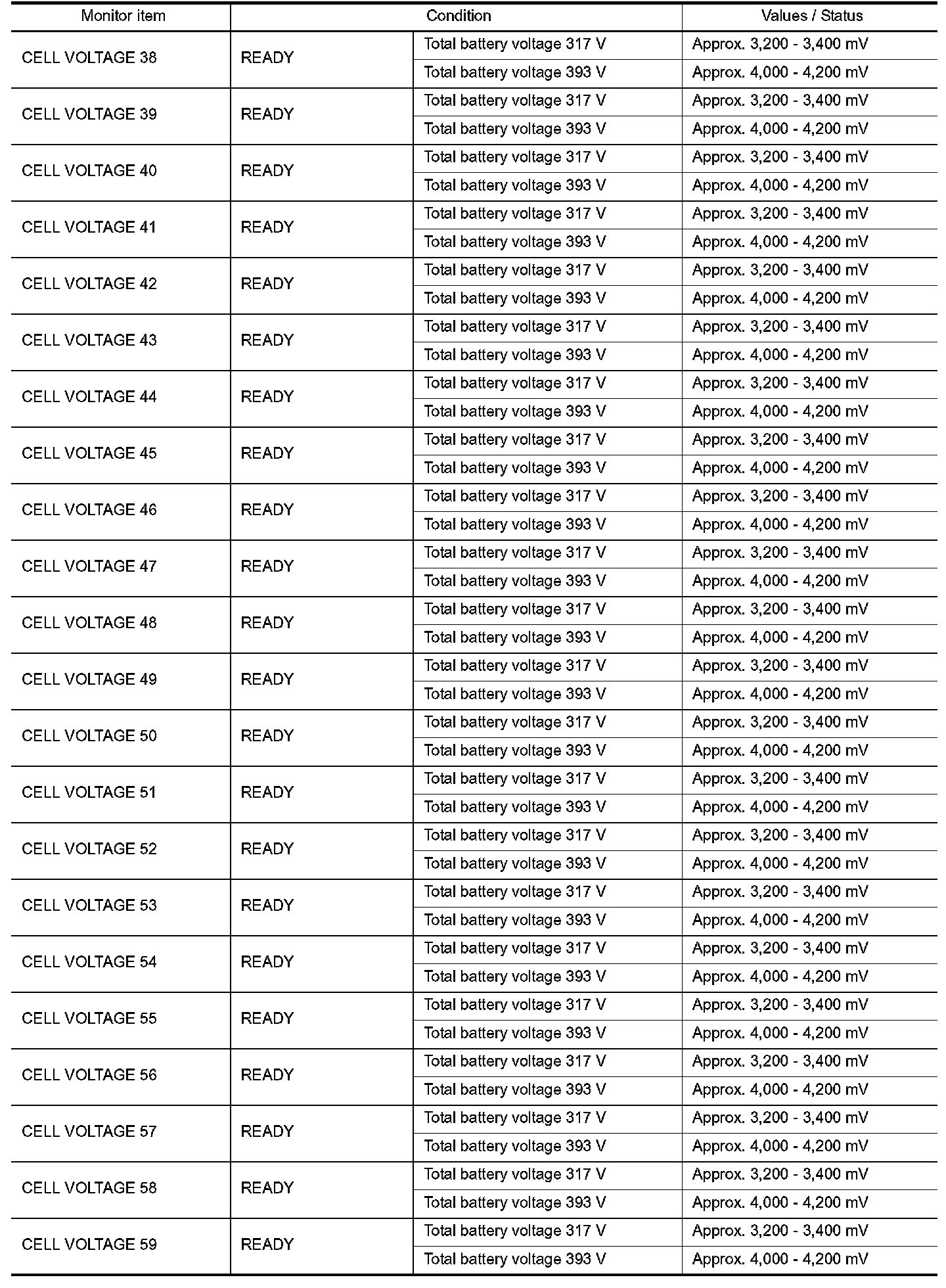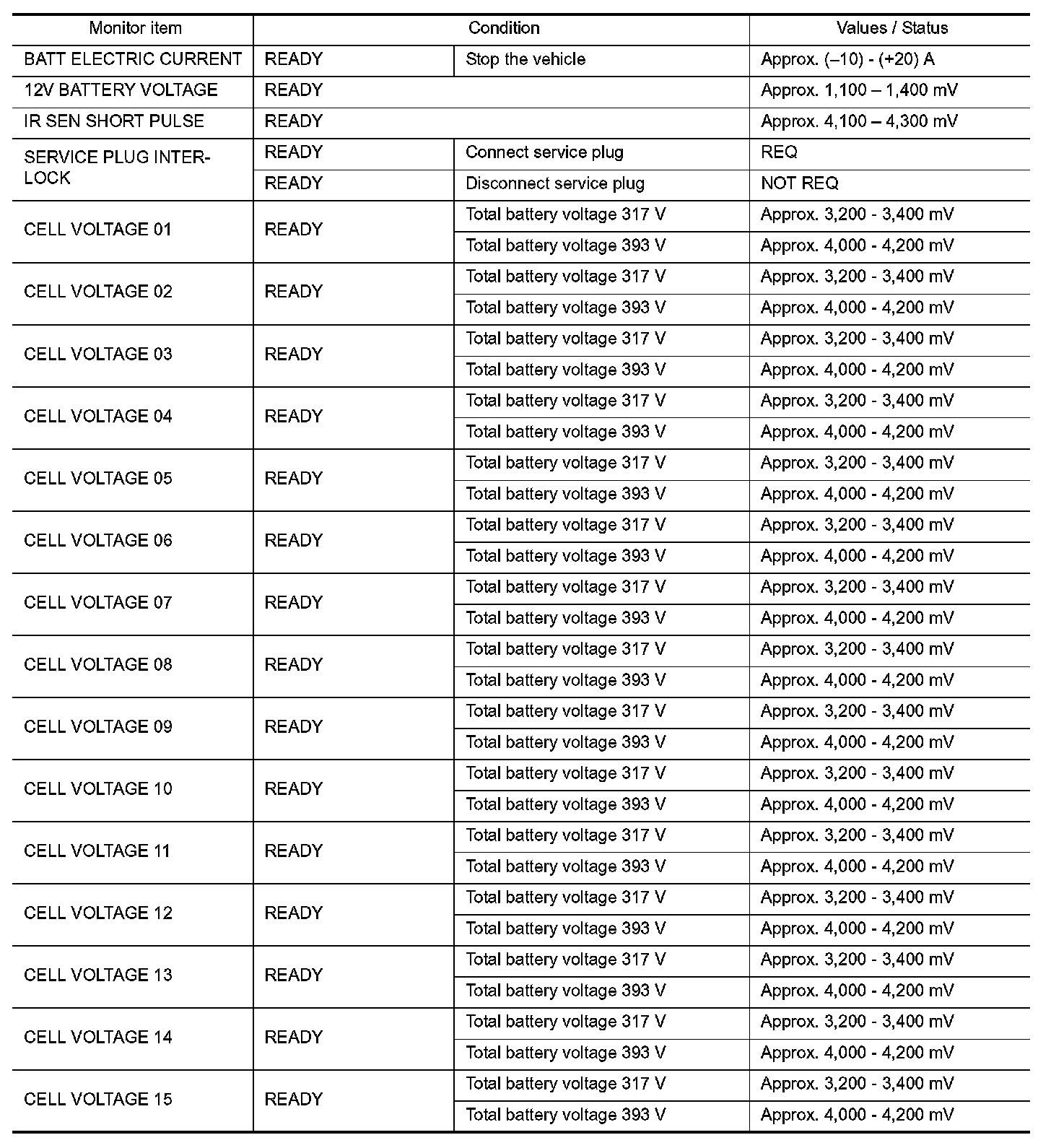 Pinout Values and Diagnostic Parameters