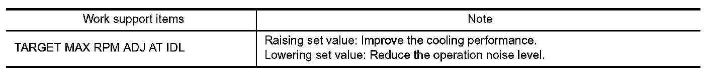 Using CONSULT, select "TARGET MAX RPM ADJ AT IDL" from "WORK SUPPORT" for "HVAC".