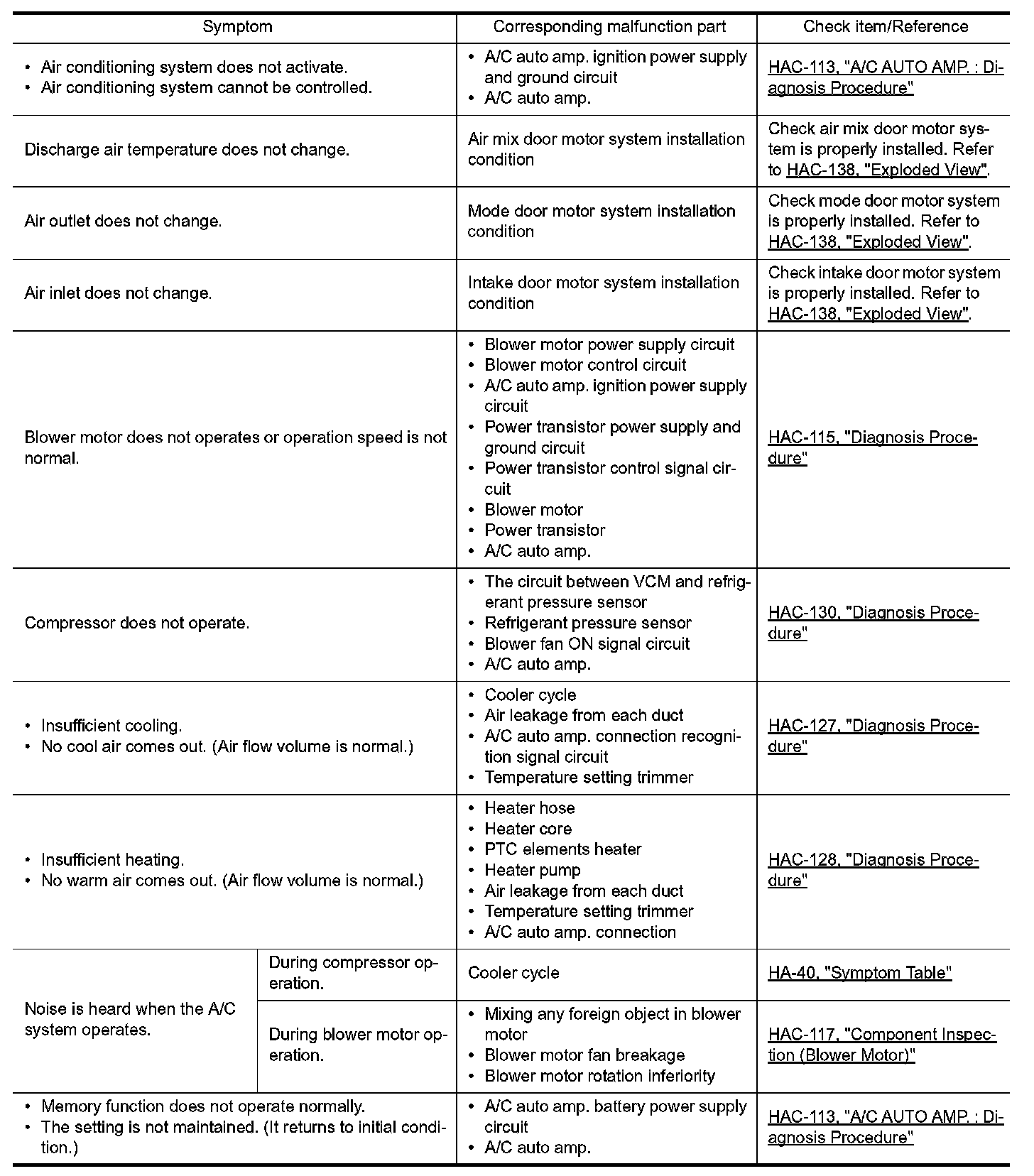 Symptom Table