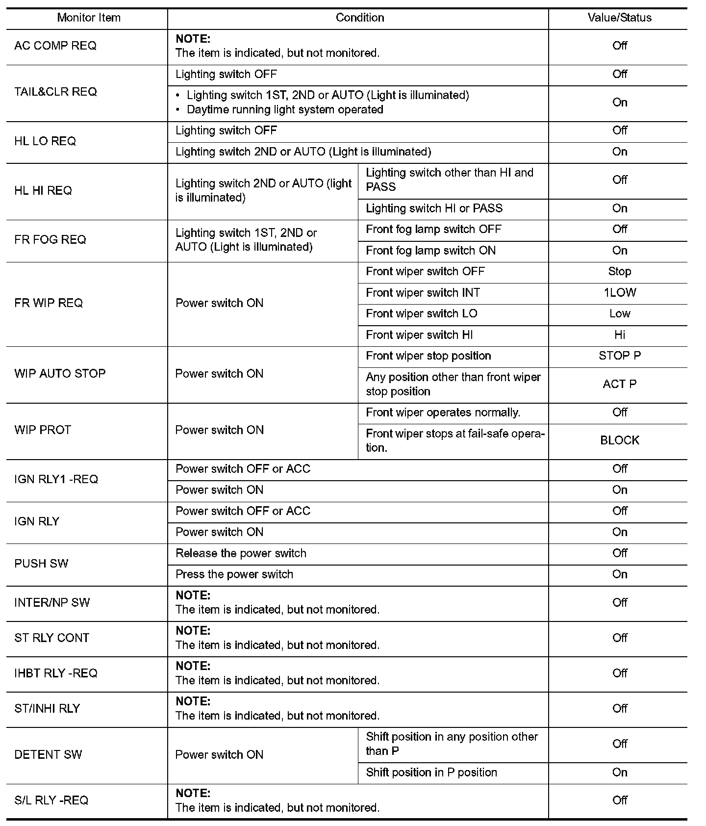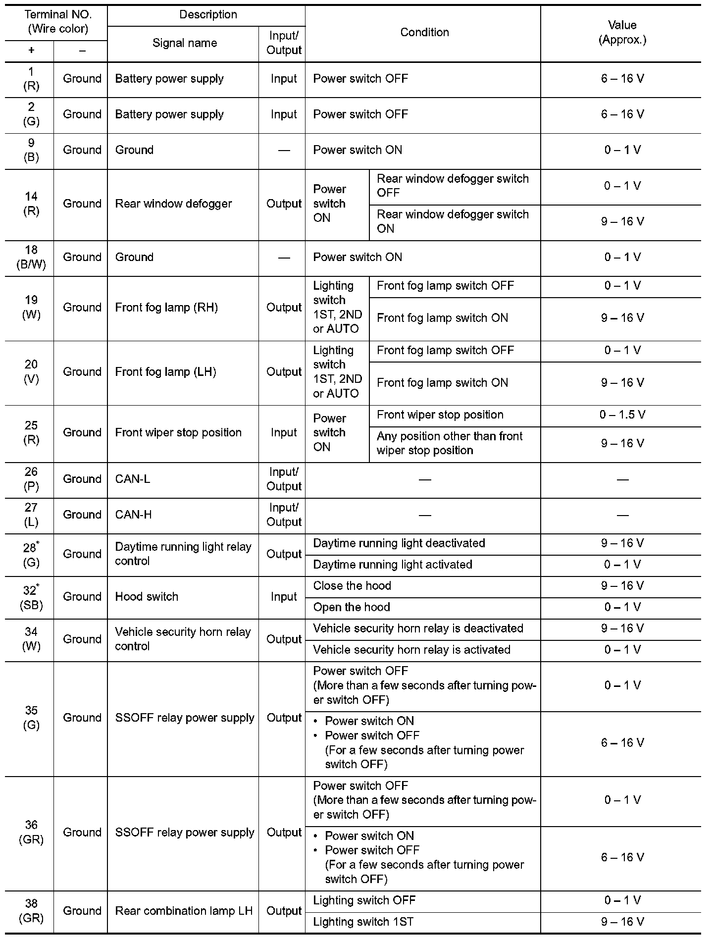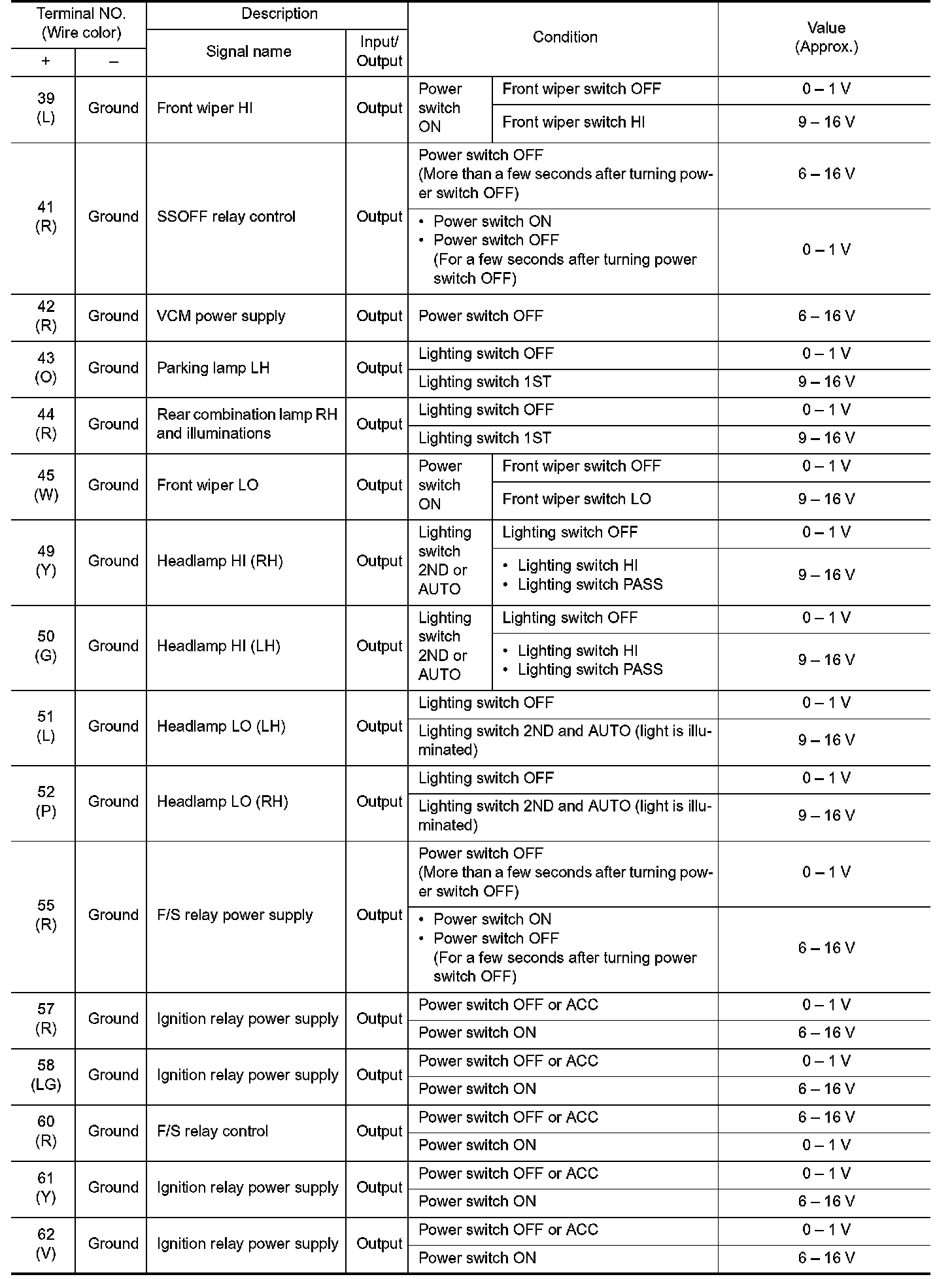 Pinout Values and Diagnostic Parameters