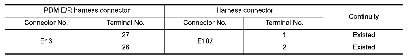 NO- Repair the main line between the IPDM E/R and the harness connector E107.