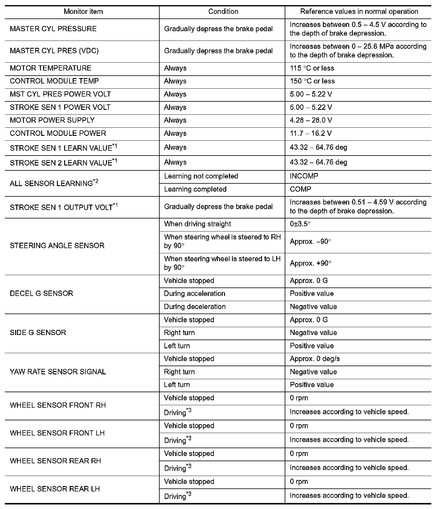 *2: Learning for stroke sensor 1, stroke sensor 2, and master cylinder fluid pressure