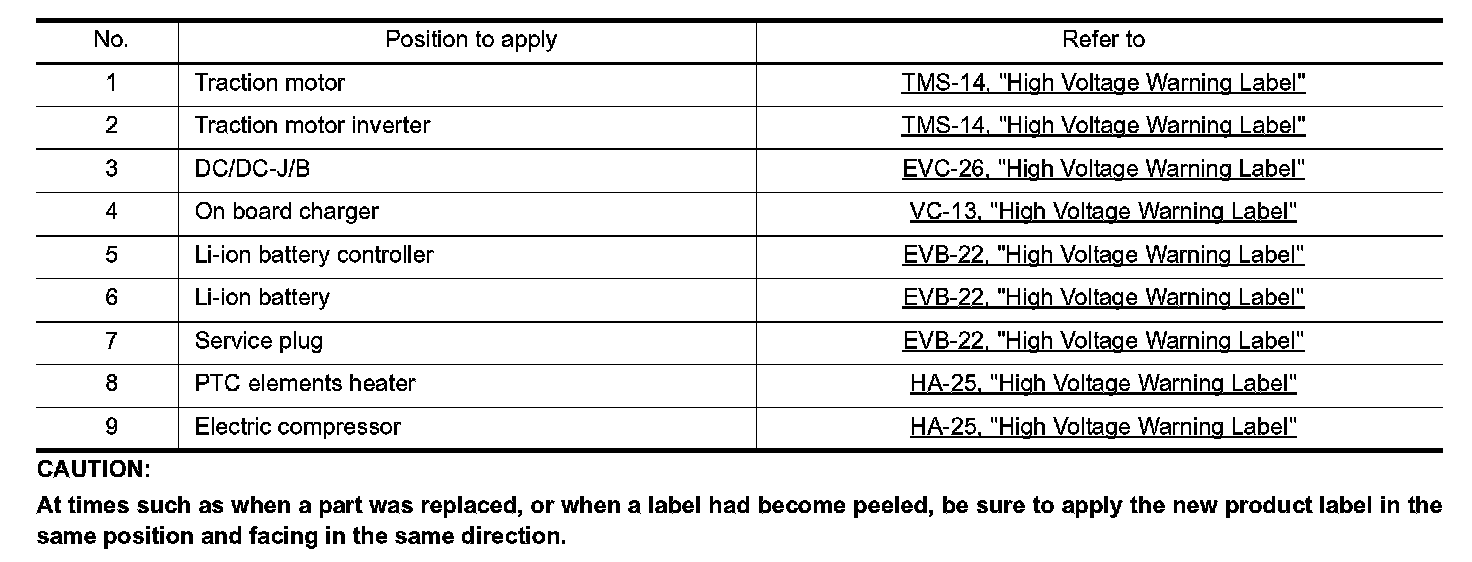 LOCATION TO APPLY HIGH VOLTAGE WARNING LABEL