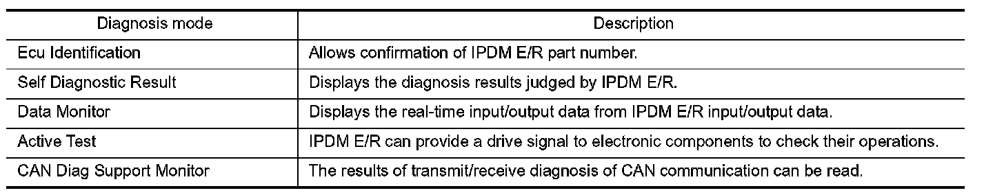 CONSULT performs the following functions via CAN communication with IPDM E/R.