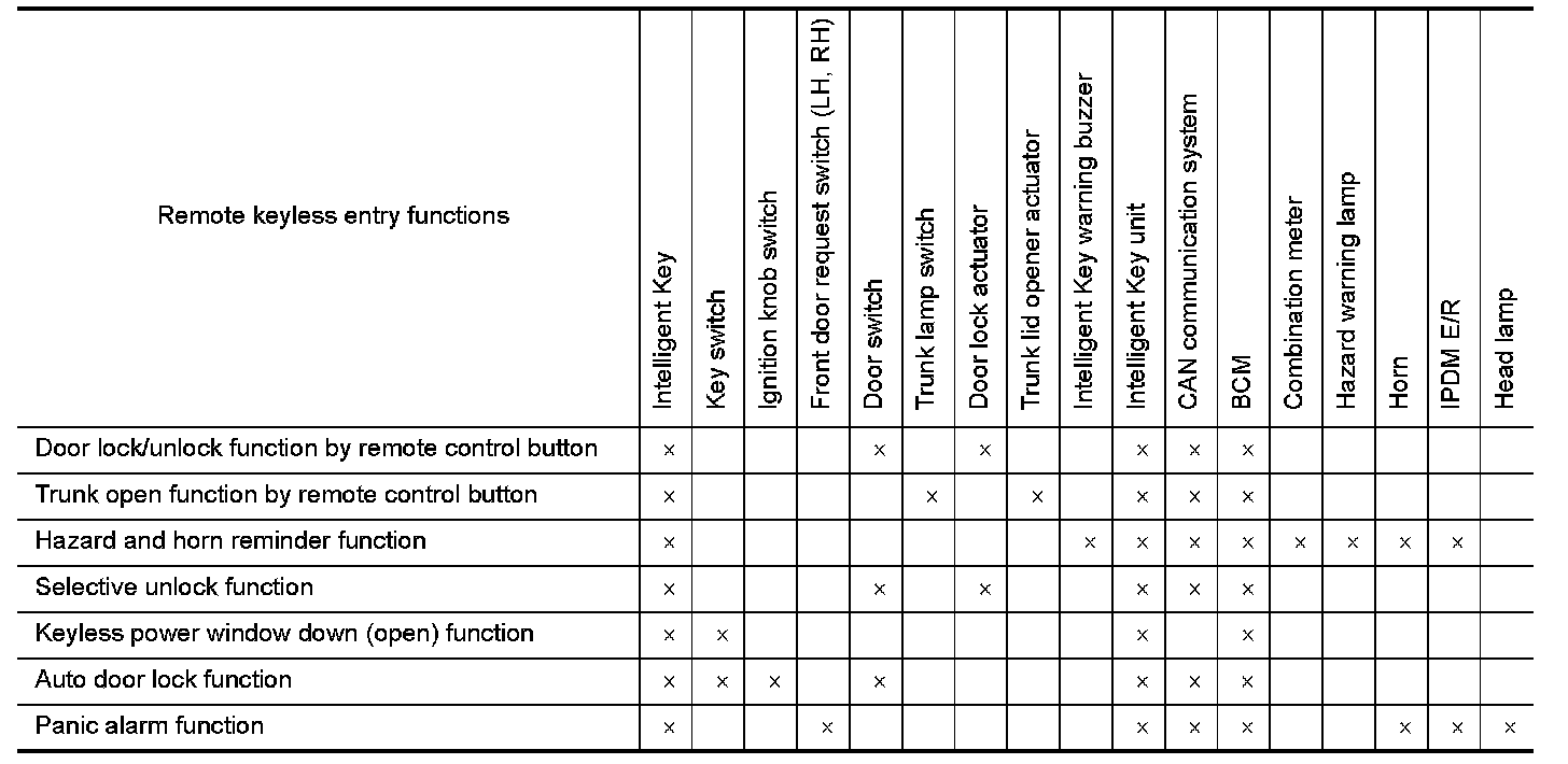 - Intelligent Key unit sends the door lock/unlock request signal to BCM via CAN communication line.