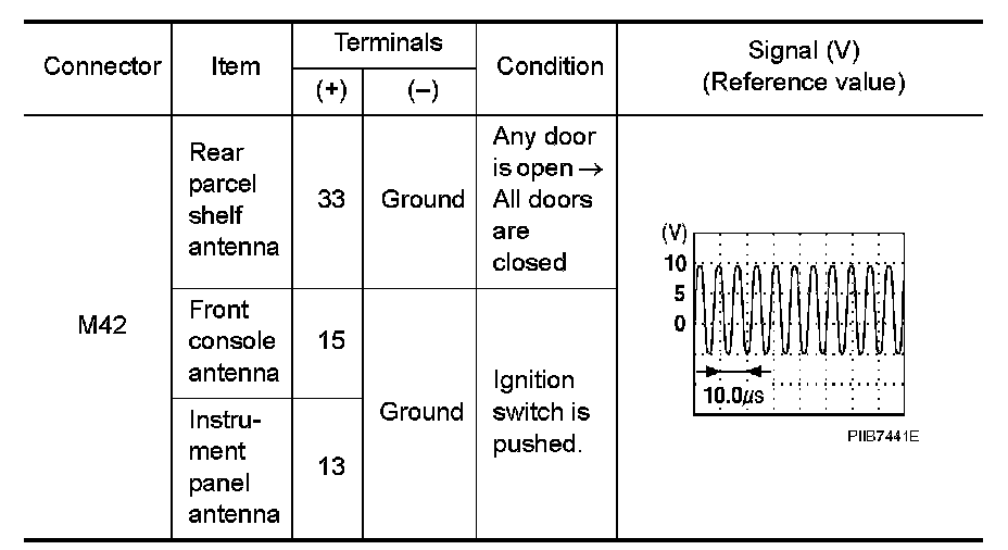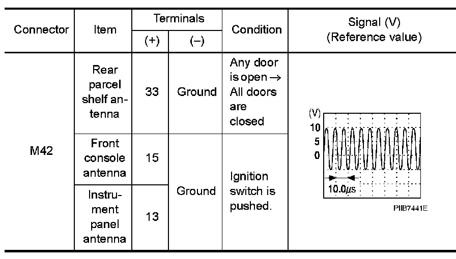 2.Check signal between Intelligent Key unit connector and ground with an oscilloscope.