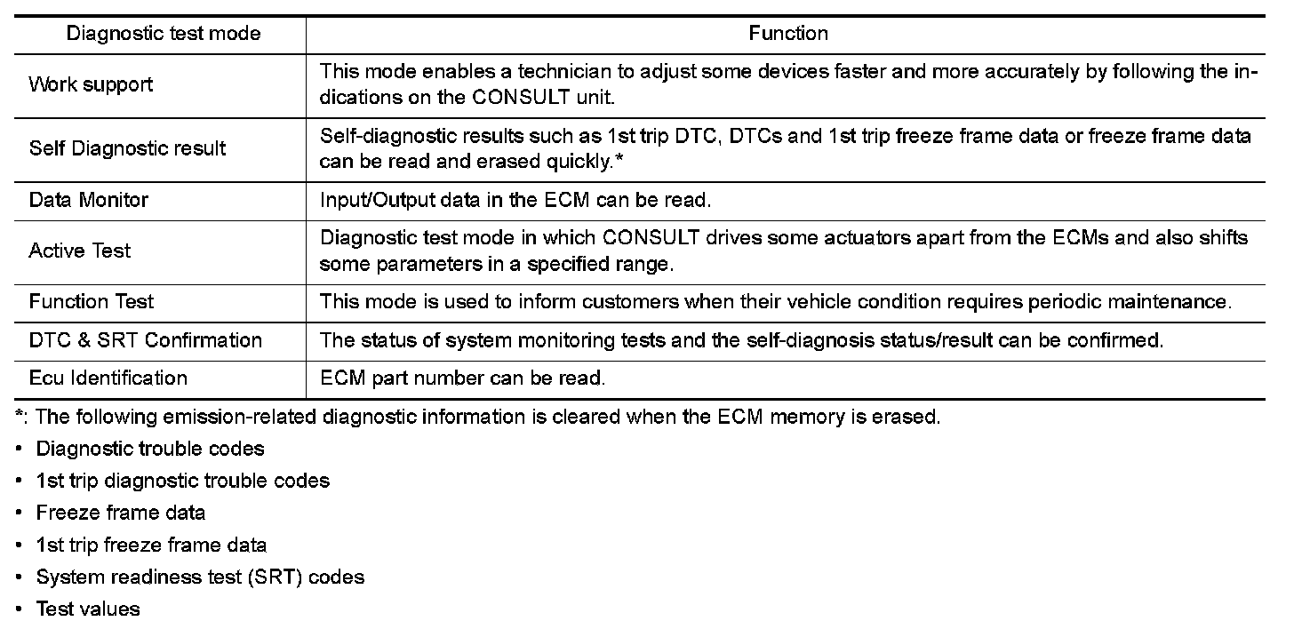 Permanent DTCs stored in ECM memory are displayed on the CONSULT screen to show if a driving pattern required for erasing permanent DTCs is complete (CMPLT) or incomplete (INCMP).