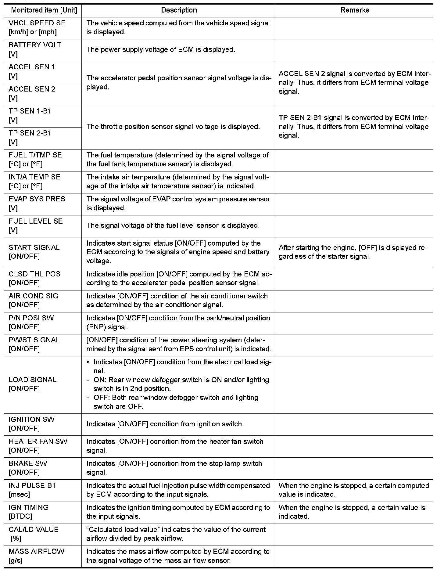- If "TIME" is neither "0" nor "1t", the DTC occurred in the past and ECM shows the number of times the vehicle has been driven since the last detection of the DTC.