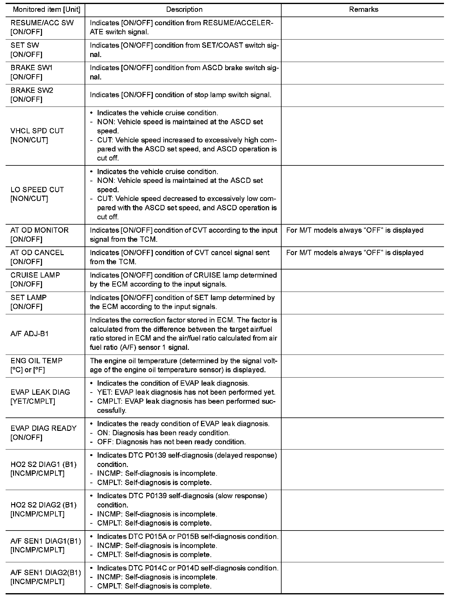 - For items whose SRT codes are set, "CMPLT" is displayed on the CONSULT screen; for items whose SRT